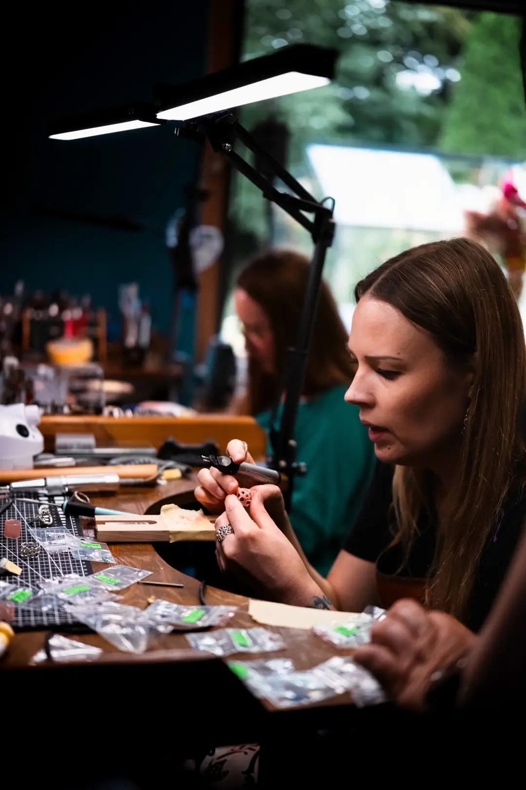Warsztaty pracy w metalu – to podstawy złotnictwa: nauka cięcia, szlifowania, polerowania, lutowania, fakturowania, kształtowania. Na zajęciach pracujemy w metalu: srebrze, miedzi oraz mosiądzu (materiały są wliczone w cenę zajęć).
